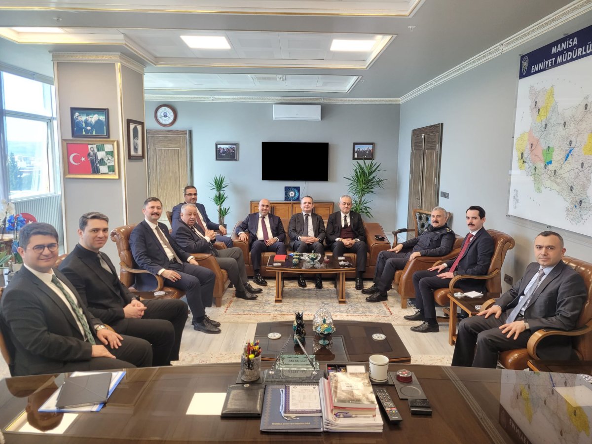 Alaşehir Kaymakamı Alper Faruk GÜNGÖR, Akhisar Kaymakamı Mustafa CAN, Demirci Kaymakamı Yavuz ARSLAN, Gölmarmara Kaymakamı Celil ATEŞOĞLU, Gördes Kaymakamı Sercan SAKARYA, Kırkağaç Kaymakamı Zafer OKTAY, Kula Kaymakamı Ömer Ahmet ÖZDEMİR, Sarıgöl Kaymakamı. Halil DALAK, Saruhanlı Kaymakamı Murat ACAR ve Soma Kaymakamı. Fatih AKKAYA teşkilatımızın kuruluşunun 180. Yıl dönümü münasebetiyle İl Emniyet Müdürümüz Fahri AKTAŞ’ı ziyaret etti. Müdür Aktaş teşkilatımız adına tebrikleri kabul ederek misafirlerimizi makamında ağırladı.