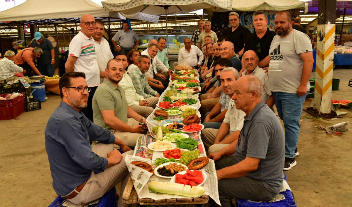 6 muhtar iki başkan Karaköy pazar esnafını gezdi