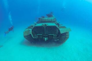 Birçok deniz canlısının yuvası haline gelen ve yaklaşık 15 metre derinlikte bulunan ABD yapımı tank, bölgeye gelen dalgıç ve su altı meraklıların en fazla görmek istediği batıklar arasında yer alıyor.