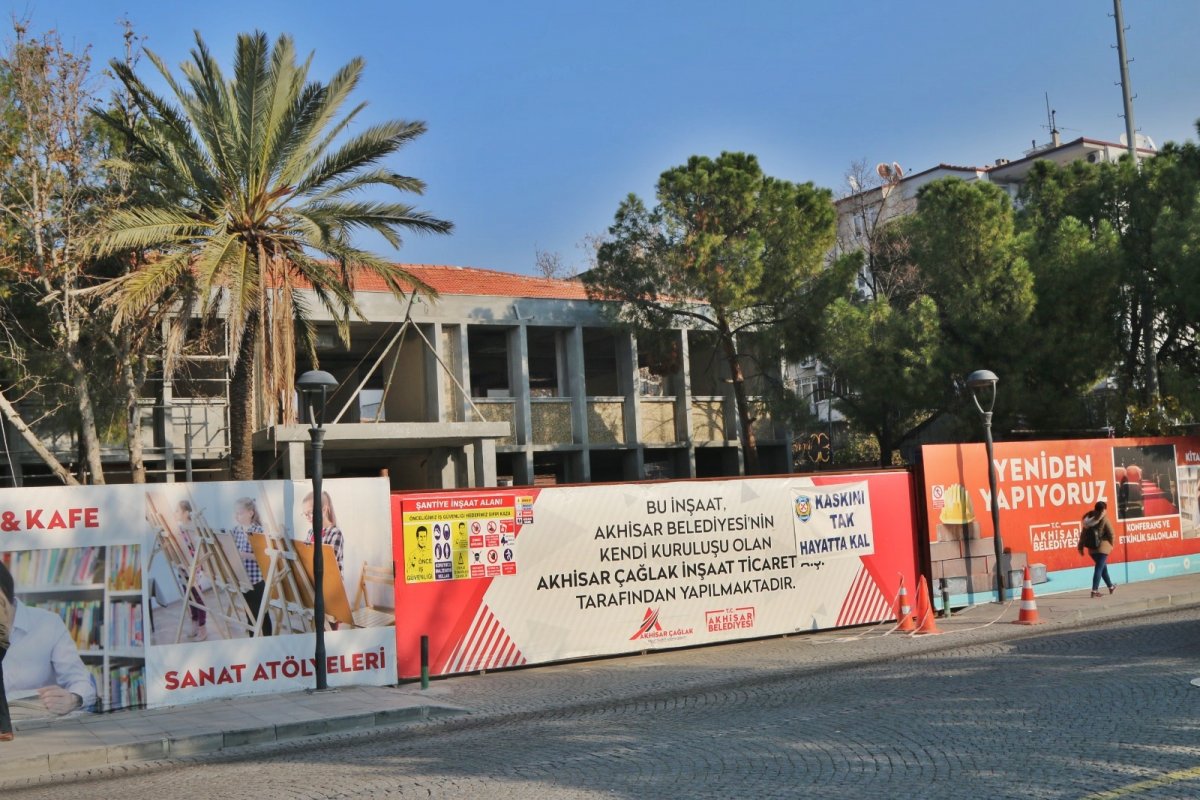 Kültür ve Sanat Merkezi tamamlanıyor.Akhisar Belediyesi,eski belediye hizmet binası alanında yapımı devam eden Kültür ve Sanat Merkezi, eski mimari yapısına sadık kalınarak yeniden ilçeye kazandırıldğı açıkladı.
