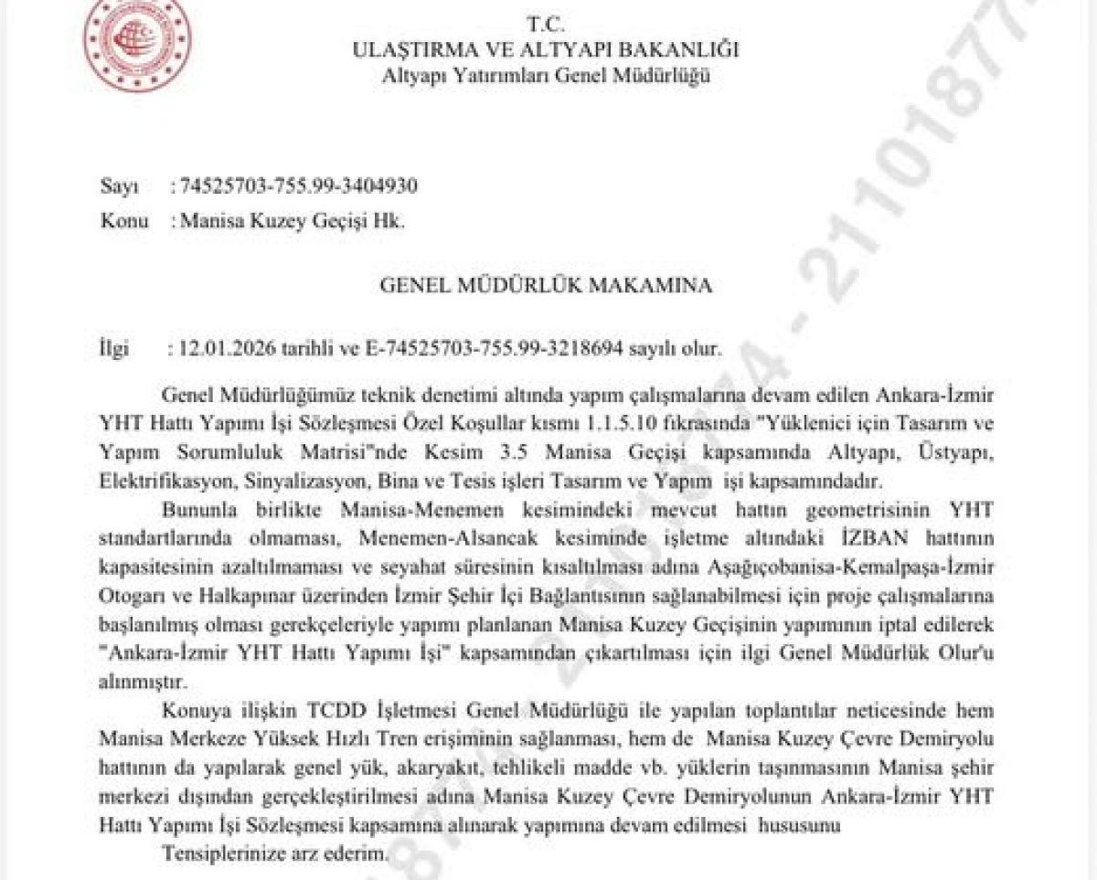 Böylece hem Manisa merkezine YHT erişimi sağlanacak hem de daha güvenli ve hızlı bir ulaşım altyapısı kurulacak.