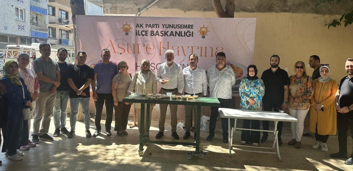 Milletvekili Tamer Akkal, AKP Manisa İl Başkanı Salih Hızlı, İl Kadın Kolları Başkanı Ebru Kalfa Kaplan, Yunusemre İlçe Başkanı İlkcan Durmaz, İlçe Kadın Kolları Başkanı Hacer Hazar ve Yöneticiler Yunusemre İlçe başkanlığının düzenlediği aşure hayrına katıldılar.