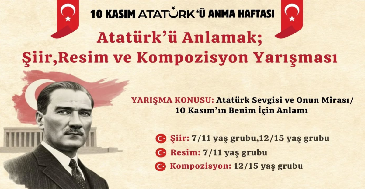10 Kasım Atatürk’ü Anma Haftası.Atatürk’ü Anlamak; Şiir,Resim ve Kompozisyon Yarışması