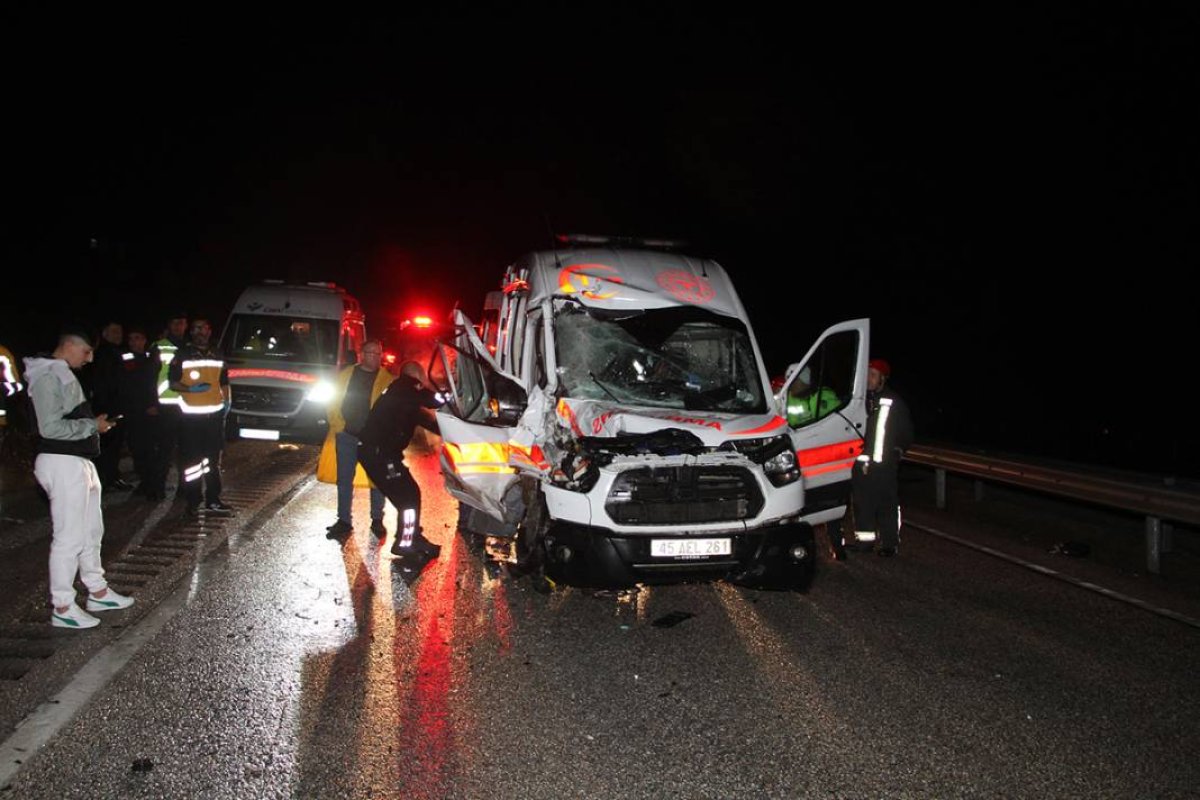 Manisa'da saat 22.00 sıralarında İzmir- Ankara D300 karayolu Kovukdere rampalarında ambulans ile plastik boru yüklü kamyon çarpıştı.Kalp krizi tanısı ile Kula Devlet Hastanesi’nden Salihli Devlet Hastanesi’ne sevk edilen Musa Özcan isimli hastanın bulunduğu, Bekir Şahin (26) yönetimindeki 45 AEL 261 plakalı ambulans, yağış nedeniyle kayganlaşan yolda İbrahim Demir yönetimindeki 43 LS 187 plakalı plastik boru yüklü kamyona arkadan çarptı.Kazada, ambulans sürücüsü Bekir Şahin, ambulanstaki acil doktoru Burak Kaan Kaşıkçı (26) ve acil tıp teknisyenleri Ayşenur Bayram (26) ile Meral Tetik (26), yaralandı.