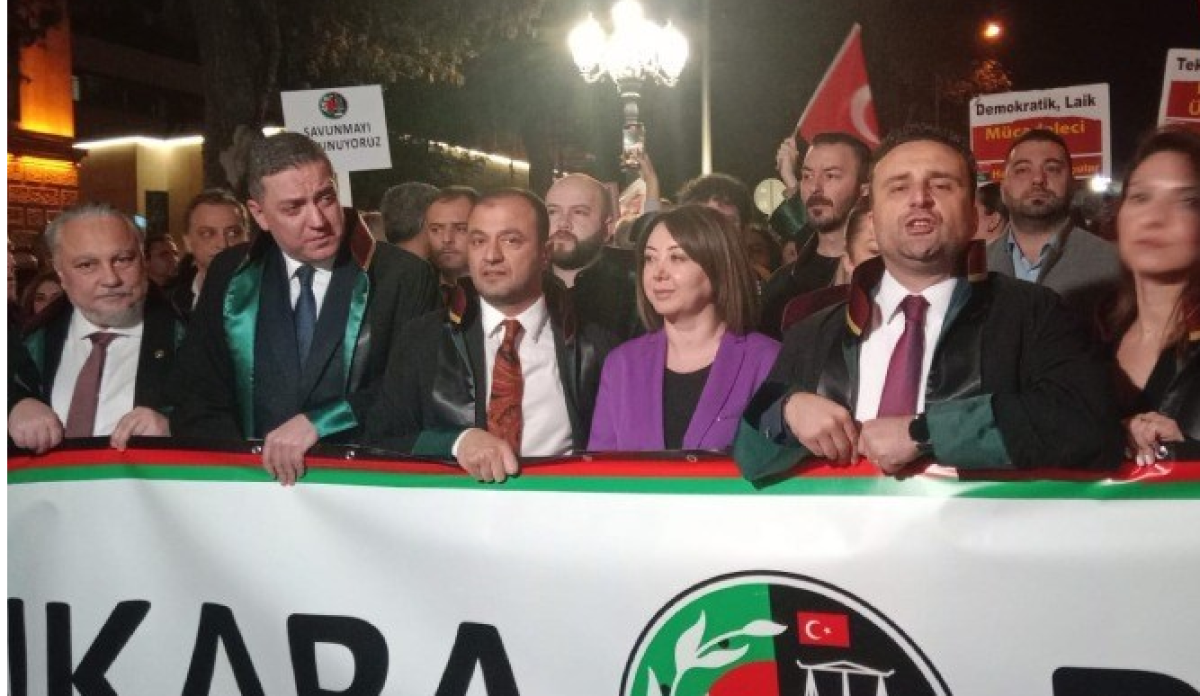 Ankara Barosu, İBB Başkanı Ekrem İmamoğlu'nun tutuklanarak görevden uzaklaştırılması ve İstanbul Barosu'na kayyum atanması ve protestolardaki gözaltılara karşı yürüdü.Ulus Atatürk Heykeli önünde başlayan yürüyüşe CHP Genel Başkan Yardımcısı Gül Çiftçi, Türkiye Barolar Birliği Başkanı Erinç Sağkan ile Ankara Barosu Başkanı Mustafa Köroğlu da kortej önünde yan yana yürüyerek katıldı. Avukatlar, yürürken, "Savunma susmadı, susmayacak", "Hak, hukuk, adalet", "Kurtuluş yok tek başına, ya hep beraber ya hiçbirimiz'' sloganları attı.