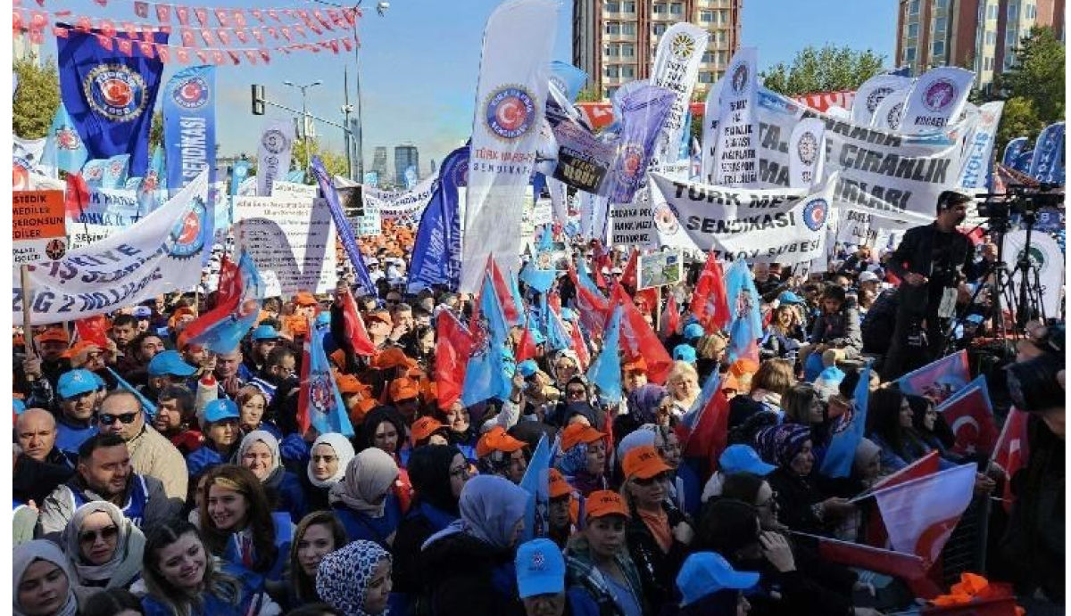Türkiye İşçi Sendikası Konfederasyonu (Türk-İş) tarafından Ankara'da düzenlenen “Zordayız, geçinemiyoruz” mitingi Anadolu (Tandoğan) Meydanı'nda başladı. Mitingde işçiler,  “Ağır vergi yükü kaldırılsın”, “Bozulan ekonominin bedelini biz ödemeyeceğiz”, “Kamu işçisi çözüm istiyor”, “İşçiler yine vergi şampiyonu”, “Kadro hakkımız engellenemez”, “Brütten net’e çakılıyoruz”, “Verilen sözler tutulmalı” dövizleri tuttu. İşçiler, “Direne direne kazanacağız”, “Vergide adalet istiyoruz” sloganları attı.