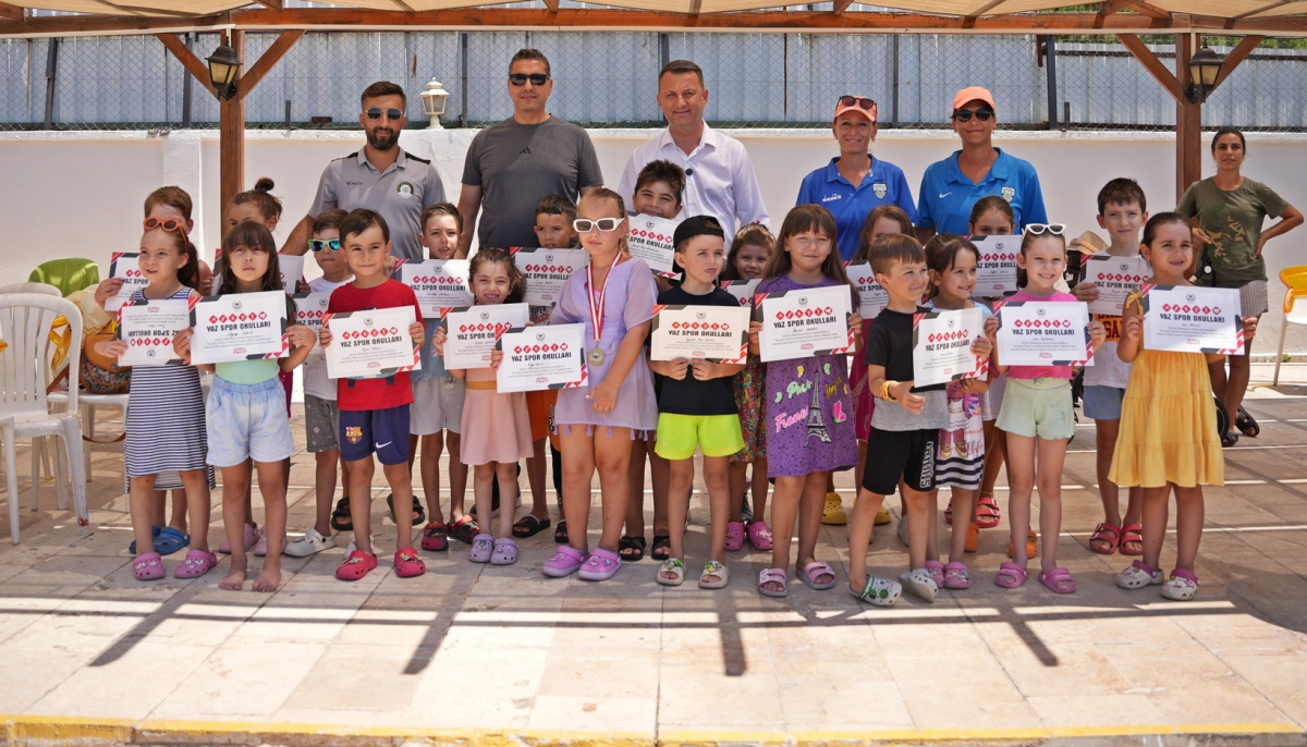 Belediye Başkanı Ekrem Kayserili, Yaz Spor Okullarımız kapsamında düzenlenen Yüzme Kursu’nun ilk etabını başarıyla tamamlayan çocuklarımıza katılım belgelerini takdim etti.Başkan Kayserili'Çocuklarımızın yaz tatilini verimli, eğlenceli ve sağlıklı geçirmeleri için açtığımız kurslarımızla, onların kişisel ve fiziksel gelişimlerine katkı sunmaya devam edeceğiz.'dedi