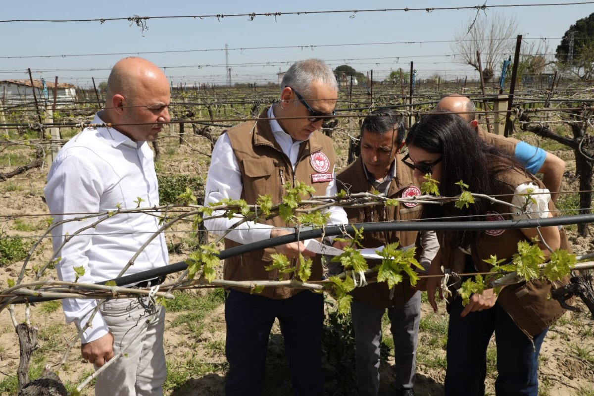 Manisa İl Tarım ve Orman Müdürü Metin Öztürk, bağ alanlarında uyanmanın başlaması ile birlikte hastalık ve zararlılara yönelik gelişmeleri yerinde incelemek amacıyla teknik personellerle birlikte saha çalışmasına katıldı.
