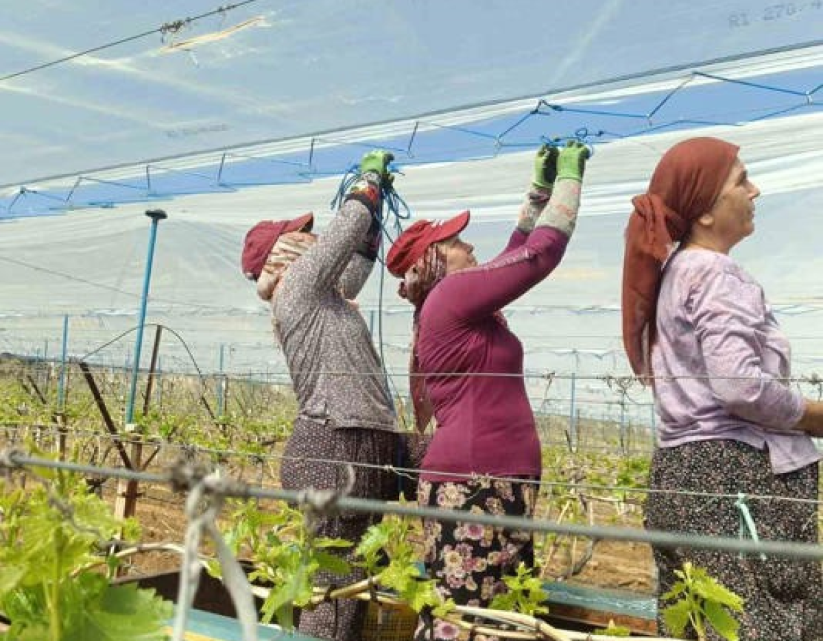 Sarıgöl'de üzümleri aşırı sıcaklık, dolu, iri taneli yağmurlar, kırağı, don ve toz gibi olumsuz şartlardan korumak amacıyla, her yıl uygulanan beyaz kanaviçe örtüleme işlemi devam ediyor. Üzüm bağlarının her bir sıranın üzeri bu beyaz örtülerle kaplanıyor. Bu işlemi gerçekleştirmek için ilçe ve çevresinde gençlerden oluşan örtü ekipleri çalışıyor. Sabahın erken saatlerinde işe başlayan ekipler, kısa sürede bağların örtüleme işlemini tamamlayarak diğer bağlara geçiyor. Örtüleme işinde çalışan ekip üyelerine günlük 1750 TL yevmiye ödeniyor.