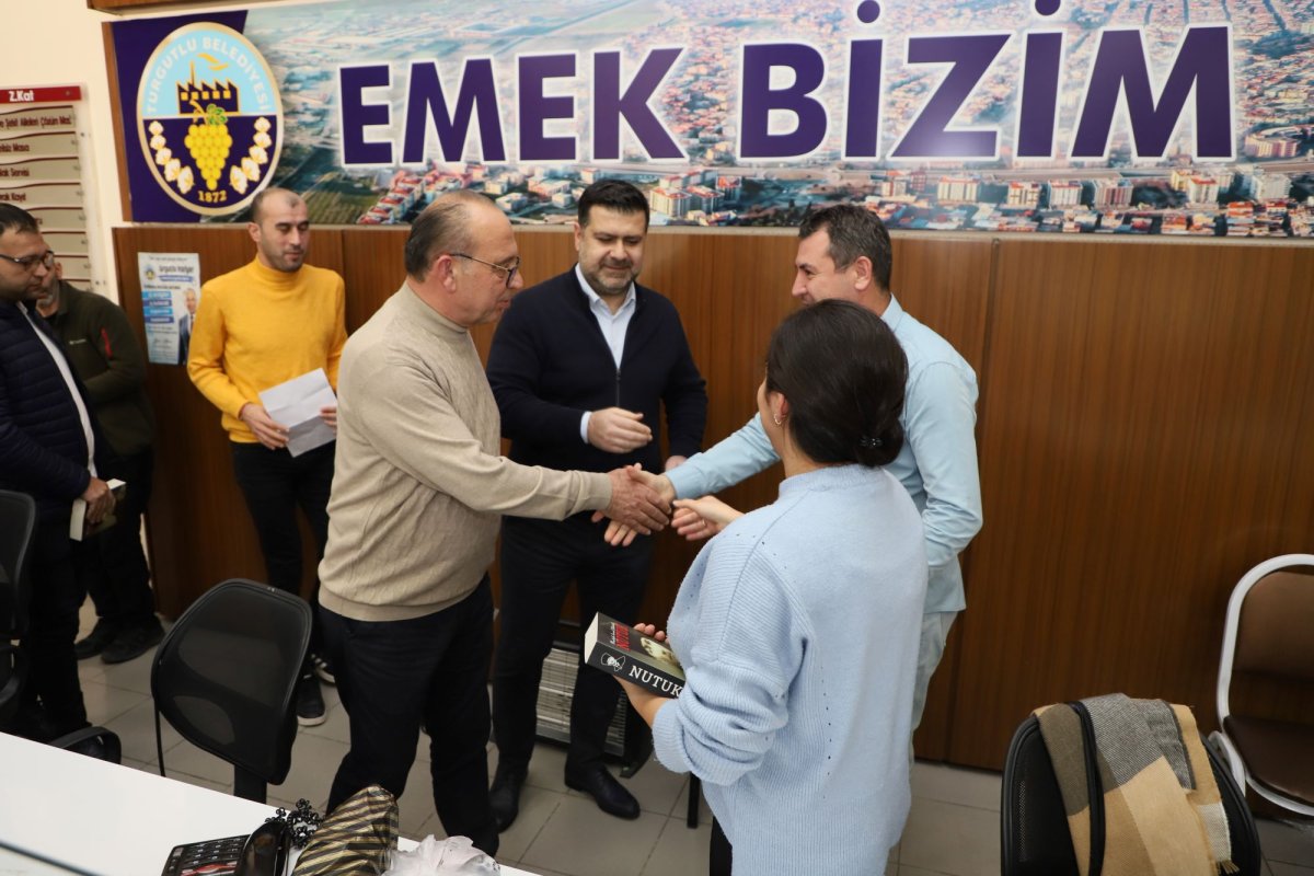 Turgutlu Belediye Başkanı Çetin Akın, 2023 yılının son mesai gününde belediye personeliyle bir araya gelerek yeni yıllarını kutladı.Turgutlu Belediye Başkanı Çetin Akın, Başkan Yardımcıları Fırat Honaz, Ahmet Daşkan, Evren Erbaş, Personel A.Ş. Genel Müdürü Orhan Eratıcı ile birlikte belediye personelinin yeni yılını kutladı. Belediye içerisindeki tüm birimleri tek tek ziyaret eden Başkan Çetin Akın ve Başkan Yardımcıları, personelin yeni yılını tebrik ederken aynı zamanda yeni yıl hediyesi olarak Nutuk takdim etti.Yeni yıl dileklerini paylaşan Başkan Çetin Akın, “Turgutlu’muza birlikte hizmet etmekten mutluluk duyduğum çalışma arkadaşlarımızla bir araya gelerek yeni yıllarını kutladık. 2024, hepimizin sağlıkla, mutlulukla, huzurla yaşayacağı bir yıl olsun. Hep beraber nice güzel ve aydınlık günlere” dedi.