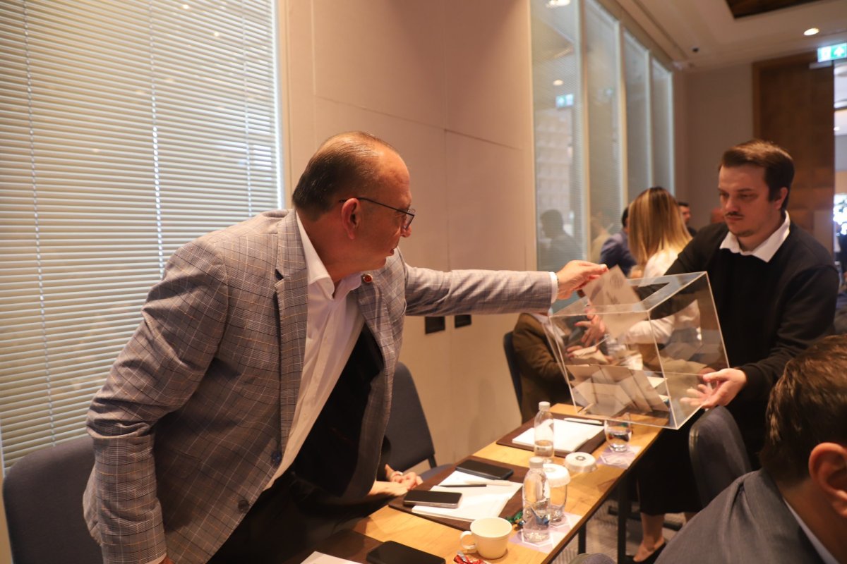 Turgutlu belediye başkanı Çetin Akın Turgutlu Belediyesi olarak üyesi olduğumuz Ege Belediyeler Birliği’nin Nisan ayı Meclis Toplantısı’na katıldı.Çetin Yeniden şahsımı ‘Encümen Üyesi’ seçen Birlik Başkanı ve Manisa Büyükşehir Belediye Başkanı Ferdi Zeyrek ile üyelerimize teşekkür etti.Çetin' Alınan kararların birliğimiz ve ülkemiz için hayırlı olmasını diliyorum. Hep birlikte daha güzel işlere imza atacağız.'dedi