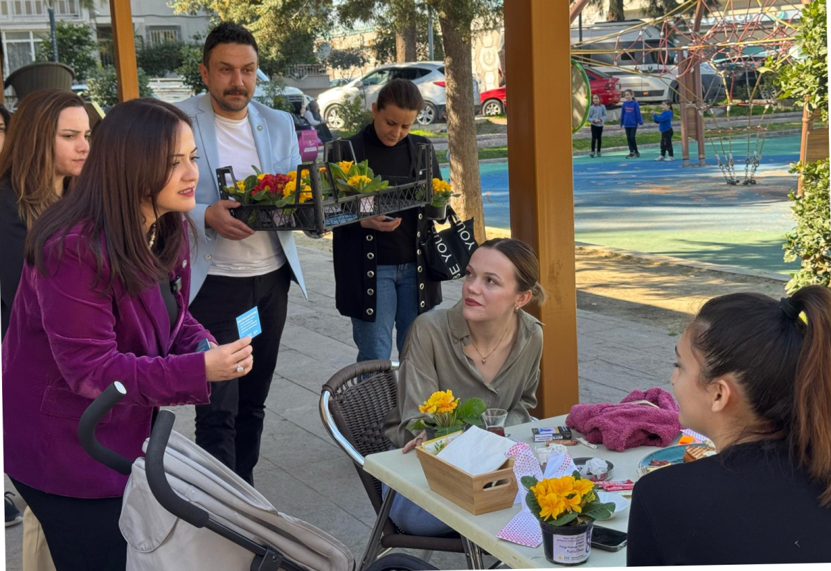 Emekçi kadınlara iyi parti genel merkezi tarafından hazırlanan bilgilendirme kartlarını ve çiçek dağıtarak sohbet eden Başkan Aytaç şunları söyledi; " Bugün sadece bir kutlama günü değil! Bugün mücadelenin günü. Bizler kadınlar olarak toplumsal eşitlik için mücadele etmeye devam ediyoruz. Bugün hala birçok kadınımız sosyal alanda, ekonomik alanda eşitsizlik yaşıyor. Şiddete maruz kalıyor ve toplum baskı altında yaşıyor. İşte bu vesileyle 8 Mart bizler için bir mücadele günüdür.