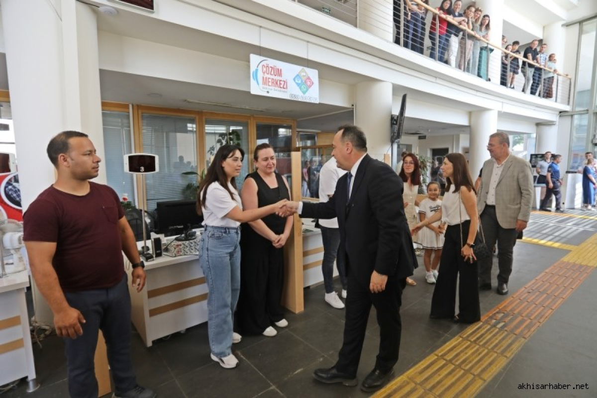 Manisa Büyükşehir Belediye Başkanı Besim Dutlulu, Manisa’daki yeni görevine başlamadan önce, 6 yıl boyunca birlikte çalıştığı Akhisar Belediyesi personeliyle vedalaştı. Görev süresi boyunca Akhisar’a kazandırılan projelerde birlikte emek verdiği mesai arkadaşlarına duygu yüklü bir mesajla teşekkür eden Dutlulu, "Birlikte nice güzel işe imza attığımız, gece gündüz demeden Akhisar için emek verdiğimiz bu hizmet yolculuğunda her birinize yürekten teşekkür ediyorum," ifadelerini kullandı.