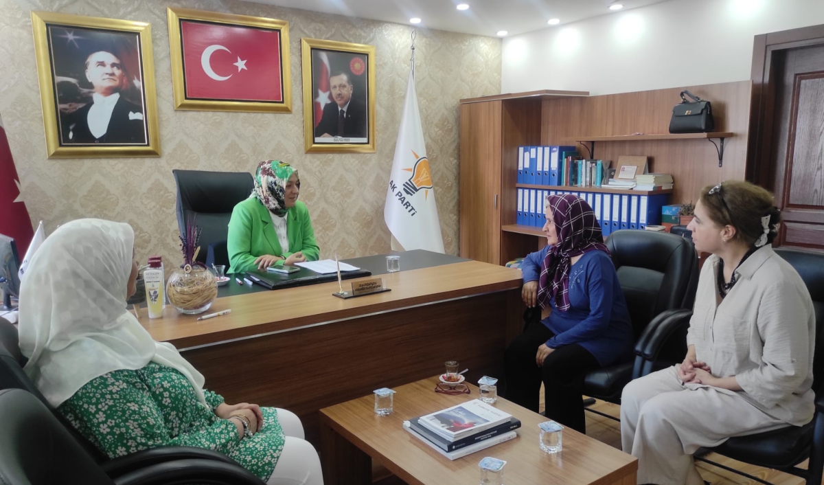 AKP Manisa İl Kadın Kolları Başkanı Ebru Kalfa Kaplan AK Parti ailesine yeni katılan üyeler ile İl Binasında biraraya geldi.Kaplan'Kendilerine tekrardan AK Parti ailemize hoşgeldiniz diyoruz'dedi