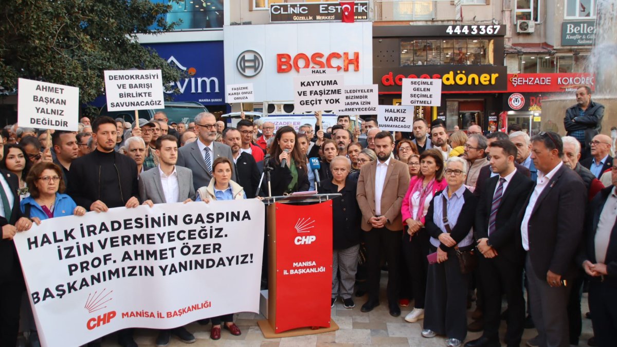 CHP Manisa İl Başkanı İlksen Özalper, partisinin 81 ilde eş zamanlı olarak düzenlediği basın açıklamasında Esenyurt Belediye Başkanı Prof. Dr. Ahmet Özer’in tutuklanması ve belediyeye kayyum atanmasının hukuksuzluk olduğunu söyledi. Başkan Özalper, “Seçme ve seçilme hakkı ayaklar altına alınmıştır” dedi.