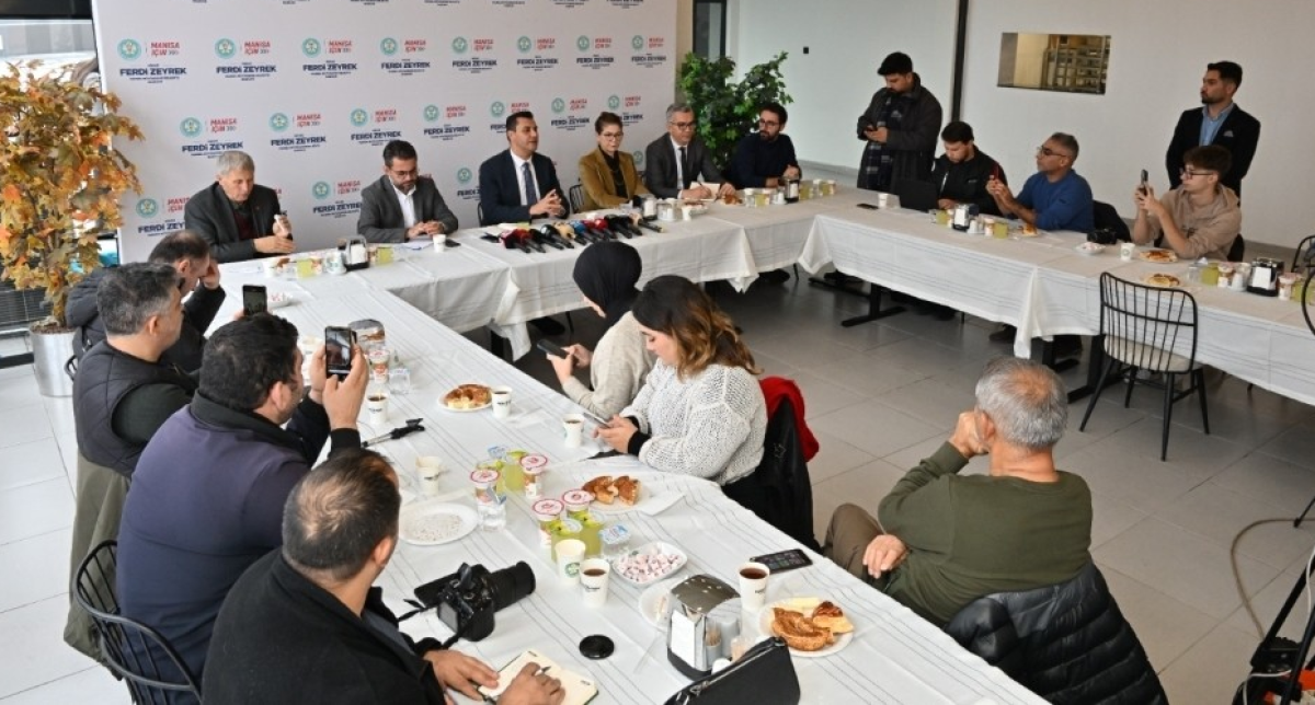 Manisa Büyükşehir Belediye Başkanı Mimar Ferdi Zeyrek, aylık olarak gerçekleştirdiği basın buluşmalarına devam ediyor. Bu kapsamda ulusal ve yerel basın temsilcileri Başkan Ferdi Zeyrek’in misafiri oldu. Başkan Zeyrek, 6 Aralık Cuma günü gerçekleştirilecek olan Manisa Gazeteciler Cemiyeti Genel Kurulu’nda aday olan isimlere de başarılar diledi. Başkan Ferdi Zeyrek, daha sonra basın mensuplarının ülke ve Manisa gündemi ile ilgili değerlendirmelerde bulundu.