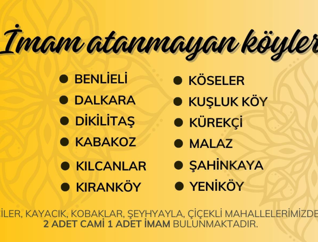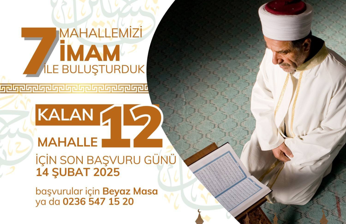 Gördes Belediye Başkanlığı imam olmayan 7 mahallemize imam görevlendirmesi gerçekleştirmiş bulunmaktayız. Geriye kalan 12 mahallemize imam görevlendirilmesi için başvurular alınmaya devam etmektedir.Emekli imamlarımızdan, bu görevlendirme için başvuruda bulunmak isteyenlerin, belediyemize dilekçe bırakmalarını rica ederiz.Gereğini bilgilerinize sunar, başvurularınızı bekleriz.