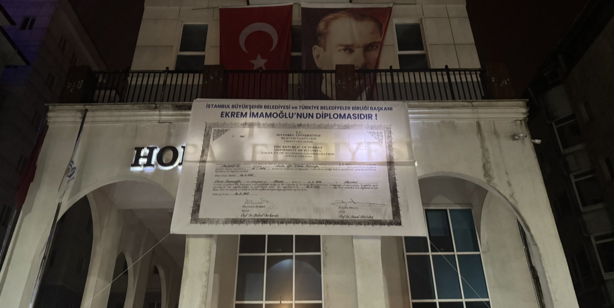 Belediye binasına İmamoğlu'nun diploması asıldı