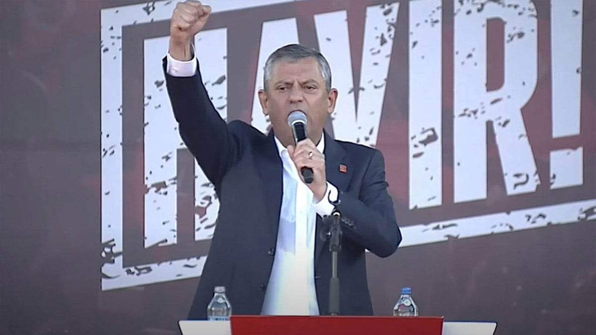 CHP Genel Başkanı Özgür Özel, partisinin Ankara'da "Vesayet Değil Siyaset! Kayyuma, Darbeye Hayır!" sloganıyla düzenlediği mitingde konuştu. Cumhurbaşkanı Recep Tayyip Erdoğan'a seslenen Özel, "Bugün sarayında oturup bu meydandan korkanlar da var. 12 metrelik hücrelerinden bu meydana coşanlar da var. Sarayından bakana sesleniyorum. Ey Erdoğan, Tandoğan Meydanı'nı hiç böyle gördün mü? Meydana varan bütün sokaklar sonuna kadar dolu, kimse ayrılmıyor görüyor musun? Bu meydanda senin gibi korkanlar değil, senden korkmayanlar var. Bu meydan direniyor, mücadele ediyor" dedi.