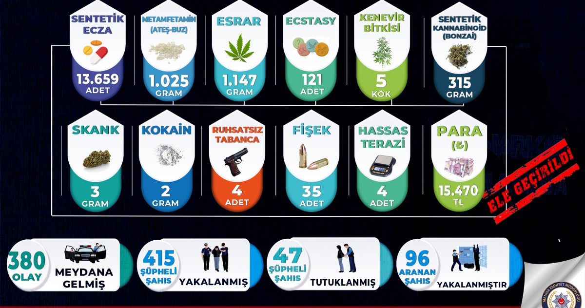 'Uyuşturucuya Geçit Yok' 01 - 31 Ekim 2024 tarihleri arasında Narkotik Suçlarla Mücadele Şube Müdürlüğümüzce (Akhisar, Alaşehir, Salihli, Soma ve Turgutlu Narkotik Suçlarla Mücadele Büro Amirliklerimizle birlikte) ilimiz genelinde yapılan narkotik operasyonları sonucunda;