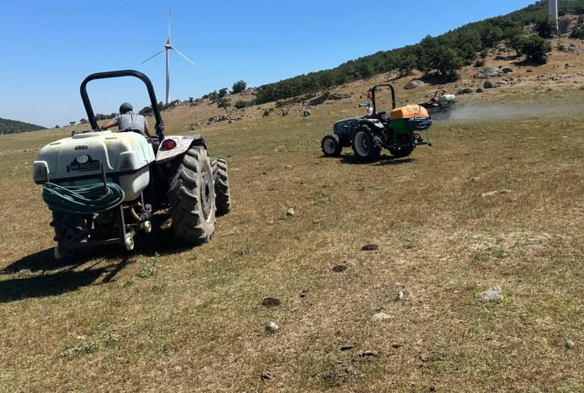 Yapılan sürveyler sonucu Dualar Mahallesi Gökçealan Mevkiinde ve Samanlık, Kocadüz mevkileri de dahil olmak üzere çekirge popülasyonunun ekonomik zarar eşiğinin üstünde olduğu gözlemlenmiştir.Bu sebeple 26.06.2025 tarihinde teknik personellerimizin gözetiminde söz konusu alanların yaklaşık 250 dekarlık kısmında çekirge mücadelesi kapsamında 250 g/l Cypermethrin etken maddeli 10 lt bitki koruma ürünü kullanılarak, 5 adet ilaçlama makinasıyla 15 üreticimizin de katılımıyla ilaçlı mücadele gerçekleştirilmiştir.