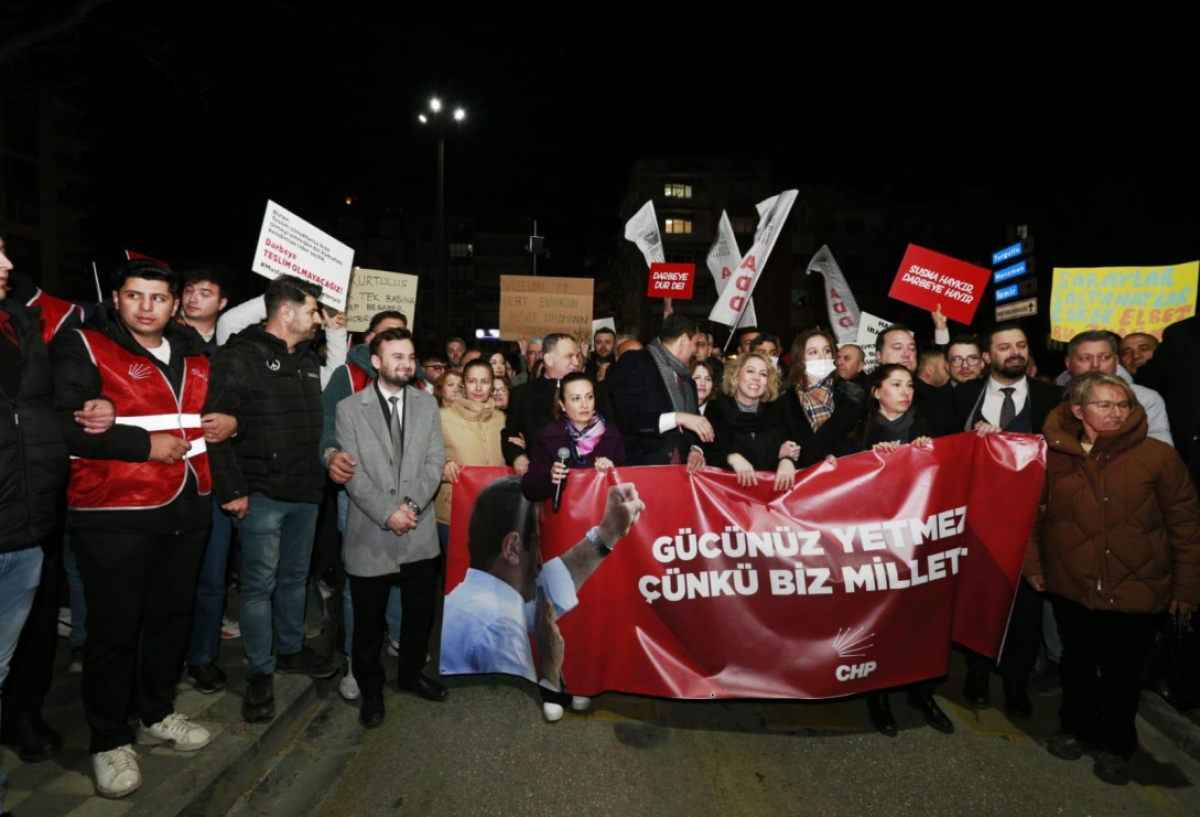 Ancak mitingin yasağa rağmen yapılıp yapılmayacağı konusunda telefonla uylaştığımız CHP İl Başkanı İlksen Özalper, miting ve yürüyüş olmayacağını, aynı meydanda saat: 20.30’da basın açıklaması yapılacağını duyurdu.CHP’den ise aynı saatlerde cep telefonlarına bir mesaj ulaştı. Mesajda; “Demokrasi Mitingi'nde buluşuyoruz... 19 Mart Darbesine geçit vermiyor, adaletsizliğe ve hukuksuzluğa sessiz kalmıyor; Bugün saat 20:30'da Manisa Manolya Meydanı'nda gerçekleştireceğimiz Demokrasi Mitingi'ne tüm halkımızı davet ediyoruz”Kaynak:Manisahaberleri com