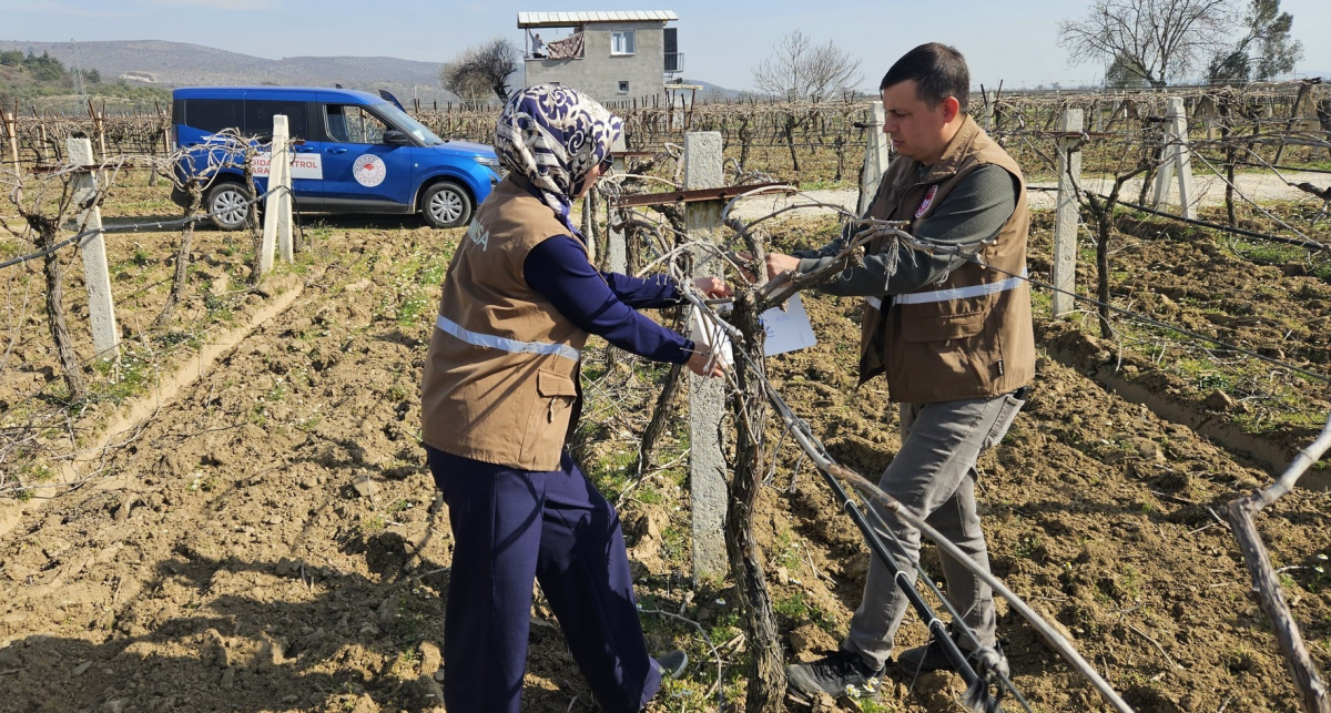 Gölmarmara İlçe Tarım Müdürlüğü teknik personelleri bağda Tahmin ve Erken Uyarı Projesi çalışmaları kapsamında, salkım güvesi tuzakları asımı gerçekleştirildi ve takibine başlandı.
