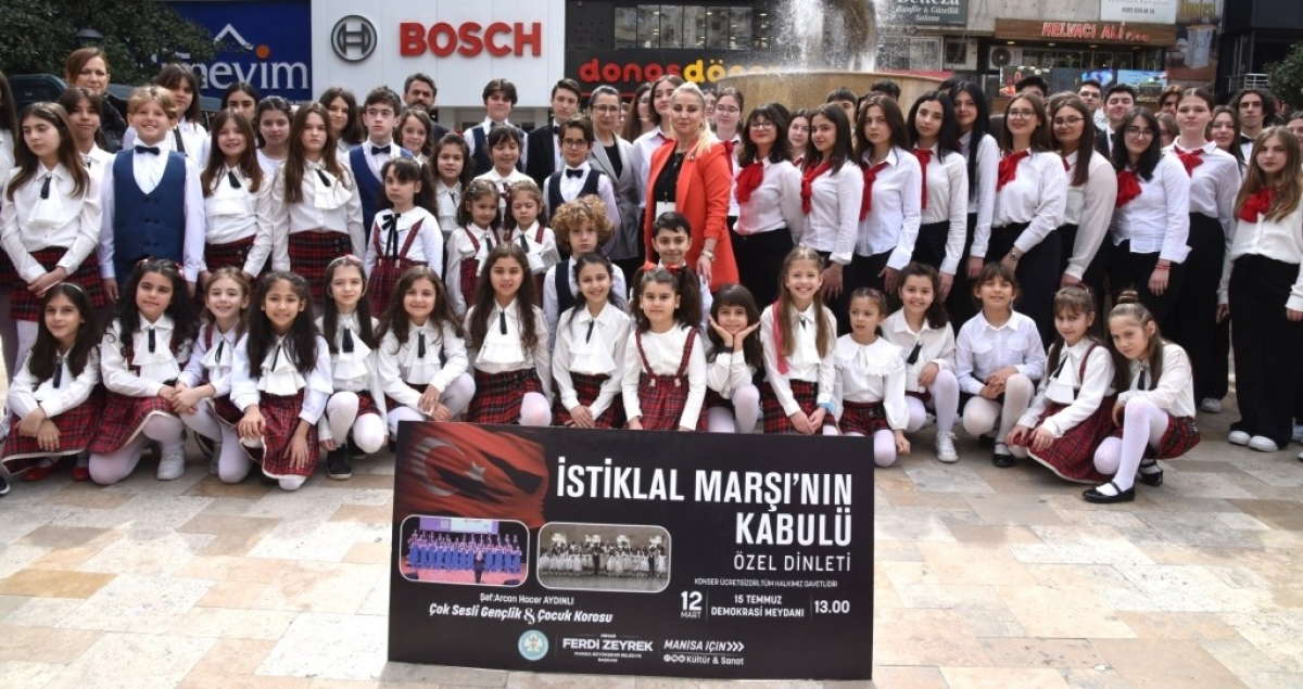 Manisa Büyükşehir Belediyesi, 12 Mart İstiklal Marşı’nın kabulü nedeniyle anlamlı bir etkinliğe imza attı. Büyükşehir Belediyesi Konservatuvarı Çok Sesli Gençlik ve Çocuk Korosu, Şef Arcan Hacer Aydınlı yönetiminde unutulmaz bir dinleti gerçekleştirdi.