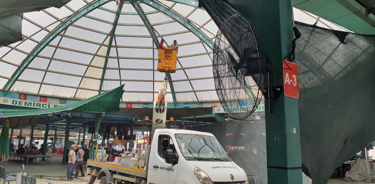 Demirci belediyesi pazar yerinde sıcakları önlemede bir ilke imza attı