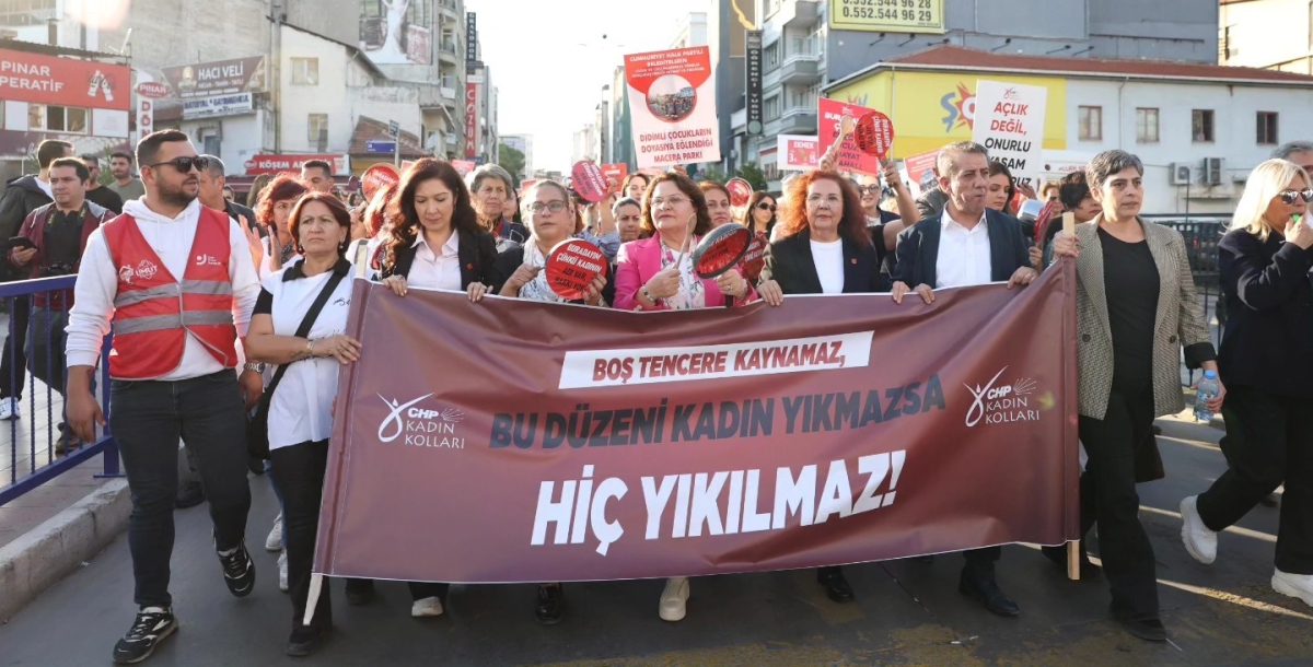 Biz kadınlar, evlerin görünmeyen yükünü omuzlarken adaletsizliğe ve yok sayılmaya karşı yan yanayız.Biliyoruz: sesimiz değişimin gücü, dayanışmamız umudun ta kendisi.