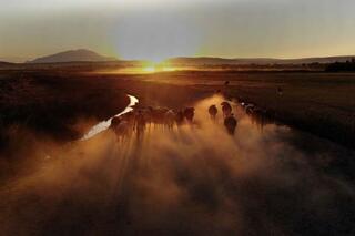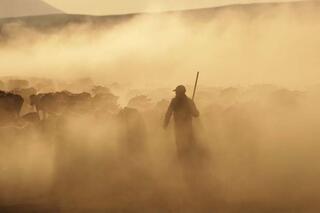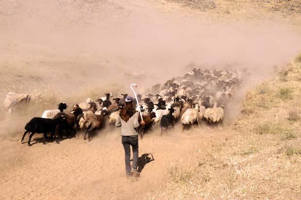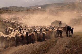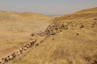 Van'ın Erciş ve Bitlis'in Adilcevaz ilçelerinde besiciler, küçük ve büyükbaş hayvanlarını tozlu yolculuğun ardından yaylalara ulaştırıyor. AA