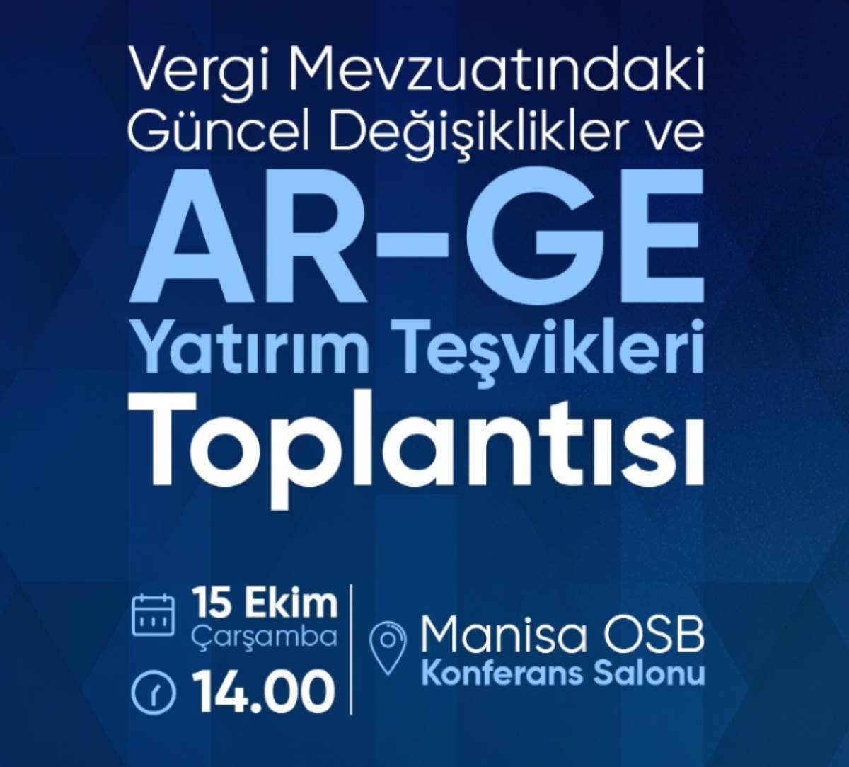 Manisa Organize Sanayi Bölgesi Sanayicileri Derneği (MOSBSANDER) ev sahipliğinde "Vergi Mevzuatındaki Güncel Değişiklikler ve AR-GE Yatırım Teşvikleri" konulu bir toplantı düzenlenecektir.