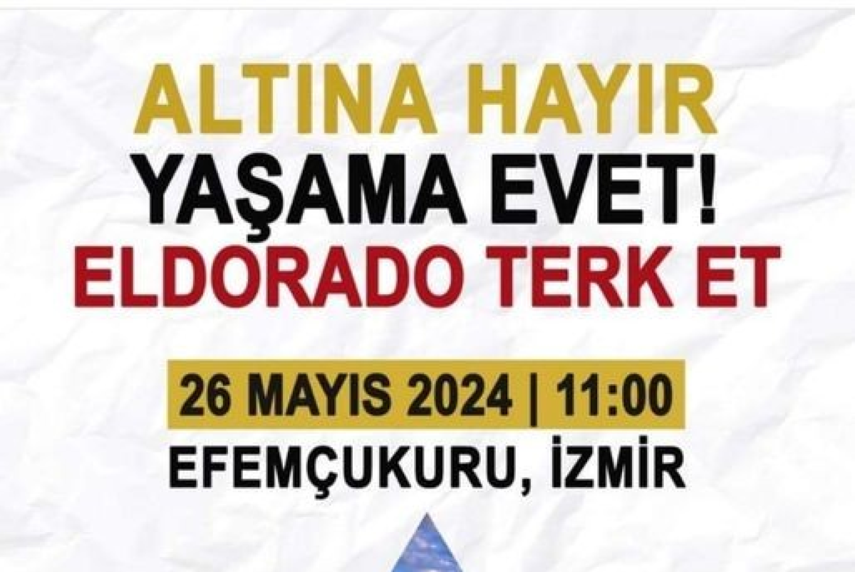 EGEÇEP'ten çağrı.Yunanistan'da Selanik ve Megali Panagia Altın Madenciliğine Karsı Mücadele Komiteleri, İklim Adaleti Koalisyonu ve Kazma Bırak Kampanyası ile beraber Kanada'lı Eldorado Altın Madenciliği Şirketinin Yunanistan ve Türkiye'de işlettiği altın madenlerine karşı gerçekleştireceğimiz ortak protesto eylemi için 26 Mayıs 2024 Pazar günü saat 11:00'de İzmir Efemçukuru Tuprag Altın Madeni önünde yapacağımız basın açıklamasına katılımınızı ve desteğinizi bekliyoruz