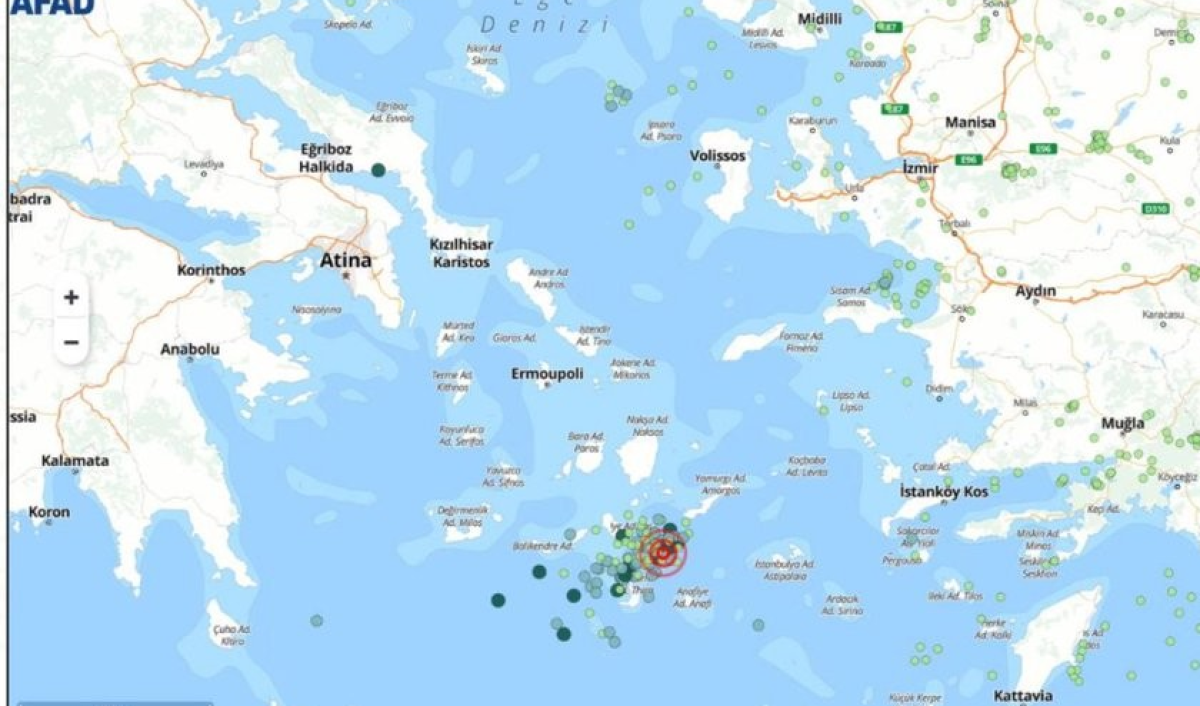 Afet ve Acil Durum Yönetimi Başkanlığı (AFAD), Ege Denizi'nde meydana gelen depremlere ilişkin paylaşım yaptı. AFAD'ın sosyal medya hesabından yapılan paylaşımda, Ege Denizi'nde, 28 Ocak'tan itibaren yoğunlaşan depremlerin sayısının 400'ün üzerine çıktığı bildirildi.Açıklamada, deprem fırtınası şeklinde gelişen bu aktivite sonucunda şu ana kadar kaydedilen en büyük depremin 4,8 büyüklüğünde olduğu belirtildi.Depremlerin Santorini Adası'nın yaklaşık 25 kilometre kuzeydoğusunda atış gösterdiği ve derinliklerinin 5 ila 25 kilometre arasında değiştiği aktarılan açıklamada, Türkiye kıyılarına en yakın depremin 140 kilometre mesafede gerçekleştiği kaydedildi.Açıklamada, 2011-2012 yıllarında da aynı bölgede benzer yoğun sismik aktivite yaşandığı ve 14 ay süren depremlerin herhangi bir volkanik hareketliliğe yol açmadığı anımsatıldı.Gelişmelerin dikkatle takip edildiği ve bilim insanları ile araştırmacıların, AFAD ile koordineli şekilde sismik hareketliliği, olası volkanik aktiviteleri ve tsunamiyi değerlendirdirdiği bildirildi.Vatandaşlar, sosyal medyada yer alan yanlış bilgilere itibar etmemeleri konusunda uyarılırken, doğru bilgi için resmi kaynakların takip edilmesi gerektiği belirtildi.
