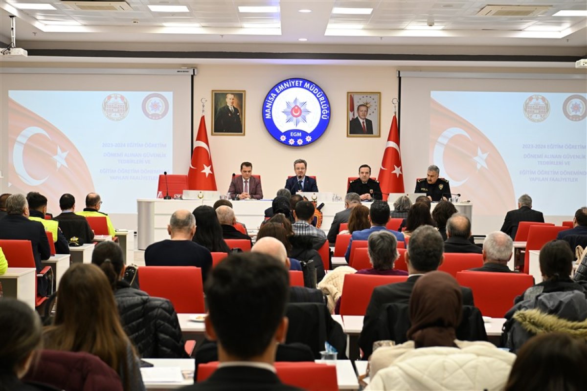 Eğitimin sorunlarının masaya yatırıldığı ve eğitimin bütün paydaşlarının yer aldığı bir toplulukla birlikte olmanın sorunların çözümü açısından önemli olduğuna değinen Vali Ünlü, “Manisa'mızda eğitim öğretimin ikinci yarı yılının çok daha iyi şartlarda icra edilmesi yaşanan sorunlar, trafikle ilgili sorunlar, okul ve çevresinin güvenliği konuları bizim için çok önemli. Biliyorsunuz bizim okul polislerimiz var. Milli Eğitim Bakanlığımızın bu konuda bir projesi var. Özel olarak önem verdiğimiz bir konu. Okullarımız ve okullarımızın çevresi, okul çevresinde yuvalanmak isteyen ve çocuklarımızı zehirlemeye çalışan bir takım şer odakları çeteleri, farklı olumsuzlukları çocuklarımıza yaşatması muhtemel oluşumları bizler çok yakından takip ediyoruz. Arkadaşlarımızla her anlamda sürekli çocuklarımızla ilgili yaşanabilecek bütün olumsuzlukları önceden tespit edip önleyici kolluk faaliyeti çalışmaları yapıyoruz. Arkadaşlarımız çocuklarımızla ilgili herhangi bir olumsuzluk, okullarımızla ilgili herhangi bir olumsuzluk olmadan bunun önüne geçmenin yollarını, çarelerini arıyorlar ve gerekli tedbirlerini alıyorlar.” Şeklinde konuştu.