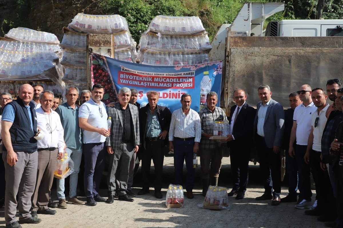 Elma sirkeli pet şişeler kiraz üreticilerine dağıtıldı