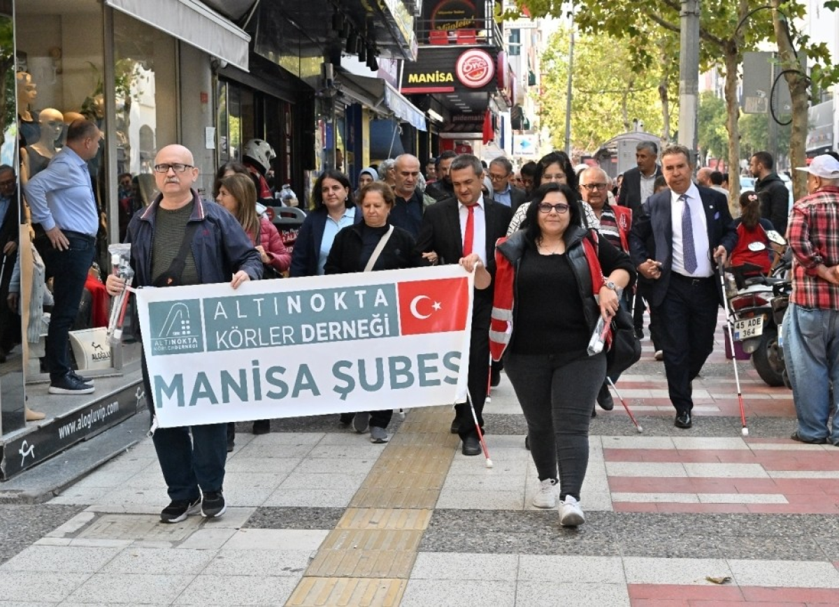 Manisa Büyükşehir Belediyesi ile Altı Nokta Körler Derneği Manisa Şubesi işbirliğinde 15 Ekim Dünya Beyaz Baston Güvenlik Günü dolayısıyla yürüyüş düzenlendi.