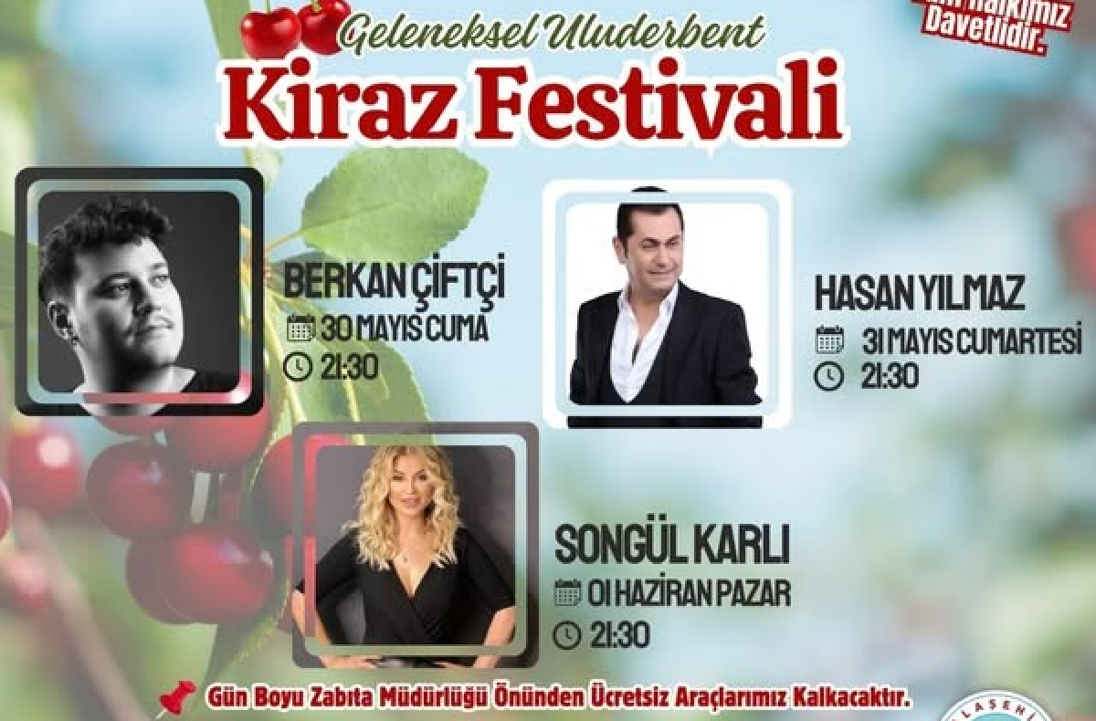 Geleneksel Uluderbent kiraz fetivali başlıyor Editor: Haber236 25 Mayıs 2025 - 16:27 Bu haber 198 defa okunmuştur. Paylaş Tweetle WhatsApp YORUMLAR 0 Yorum adlı kullanıcıya cevap Murat Çakar, ‘Şehzade tabağı’ yemeği ile birinciliği kazandı Başkan Dönmez'den eski pazar yeri turizme kazandırma müjdesi 16 ülkeden 230 yarışmacı Manisa'da Manisa Mesir macunu festivali heyecanı başlıyor! Salihli'de yaprak hırsızlığı artınca denetimler sıklaştırıldı Bursa'da on binler 'ara zam hakkımız söke söke alırız' diye haykırdı