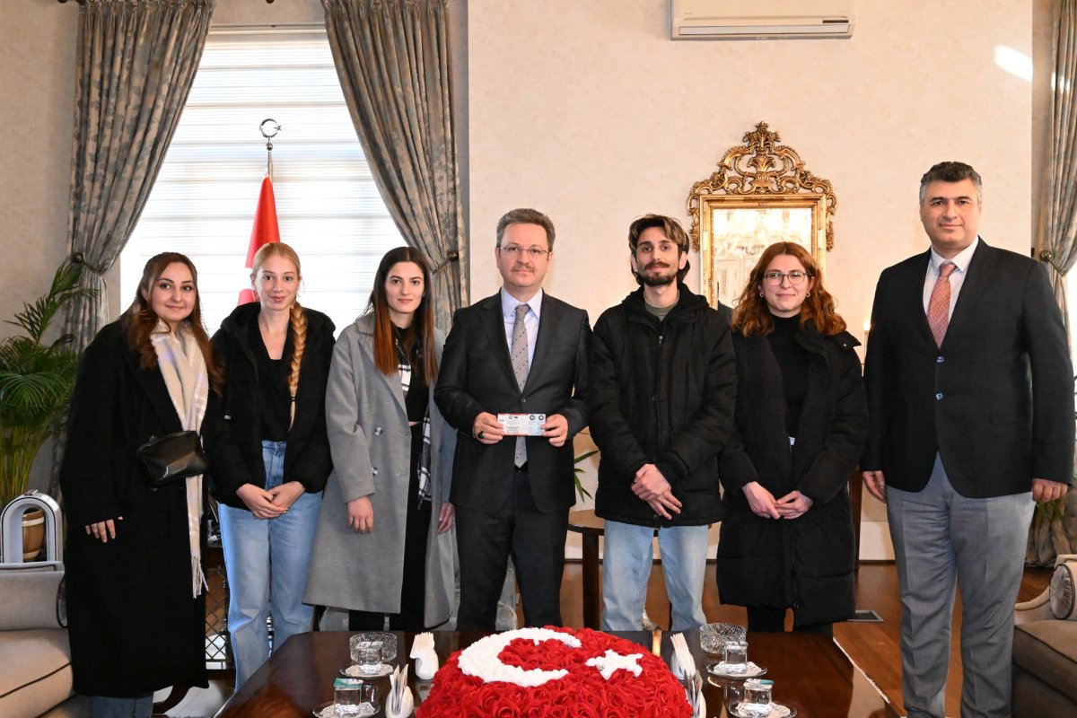 Manisa Celal Bayar Üniversitesi İletişim Fakültesi Halkla İlişkiler ve Tanıtım Bölümü öğrencileri Manisa İl Afet ve Acil Durum Müdürü Güray Karakaya ile birlikte Valimiz Enver Ünlü’yü ziyaret etti. Öğrenciler hazırladıkları “Gönülden Potaya” sosyal sorumluluk projesi kapsamında Vali Ünlü’ye bilgi vererek Şubat Ayının ilk haftası gerçekleştirilecek Manisa BBSK ve Tofaş Basketbol Maçı için hazırlanan ve geliri Manisa’da yaşayan depremzede ailelere bağışlanacak olan maç biletini takdim etti.