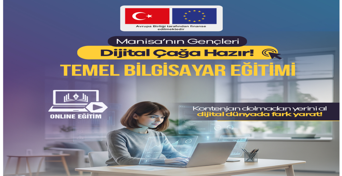 Dijital dünyada güçlü bir yer edinmek, kariyerinde fark yaratmak ve teknolojiyi daha bilinçli kullanmak isteyen 18-29 yaş arasındaki Manisalı gençlerimiz için önemli bir fırsat sunuyoruz.Avrupa Birliği finansman desteğiyle hayata geçirdiğimiz “Temel Bilgisayar Eğitimi” programımızla gençlerimizi dijital geleceğe hazırlıyoruz.
