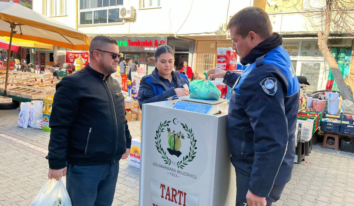Gölmarmara belediyesi pazarlara tartı kontrol noktası kurdu