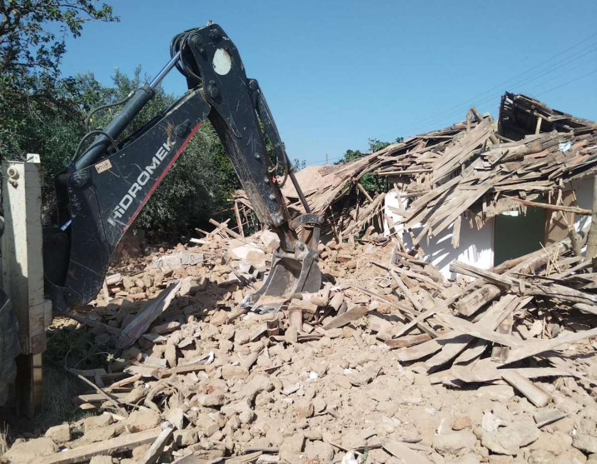 Gölmarmara'da tehlike arz eden, kent estetiğini bozan, ulaşımı aksatan metruk binaların yıkımına başlandı