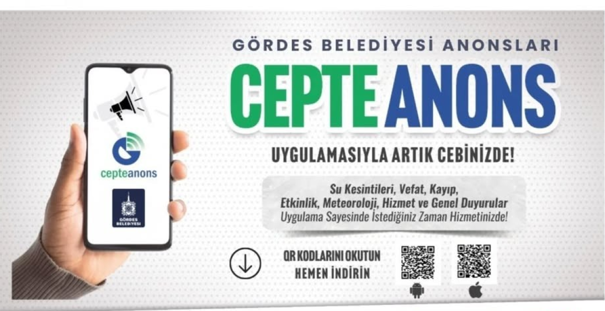 Gördes Belediyesi Cepte Anons Uygulaması.Gördes Belediyesi, vatandaşlarımızın belediye duyurularına daha hızlı ve güvenilir bir şekilde ulaşabilmesi amacıyla Cepte Anons mobil uygulamasını hizmete sunmuştur.Uygulama aracılığıyla: