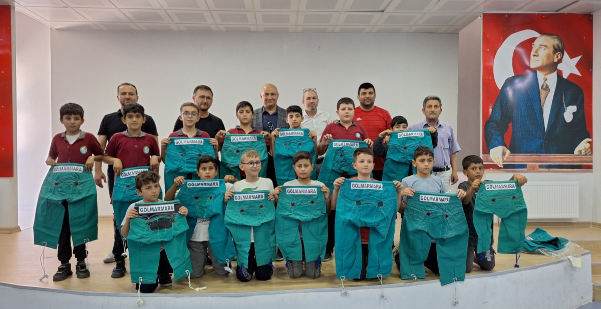 Gölmarmara Belediye Başkanı Cem Aykan, Şehit Özcan Yıldız Ortaokulu ve Namık Kemal İlkokulu öğrencileri genç güreşçilerine pırpıtlarını hediye etti.