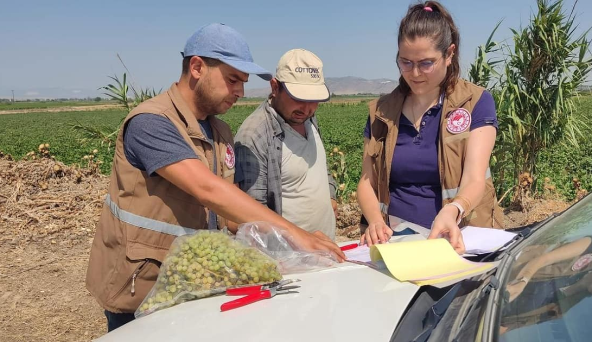 Bitki koruma ürünlerinin etiket bilgilerine göre kullanımının denetlenmesi ile insan sağlığına yönelik oluşabilecek risklerin önlenmesi, doğal dengenin korunması ve bitkisel üretimin sürdürülebilirliğinin sağlanması amacıyla, İl ve İlçe Müdürlüğümüz teknik personellerince Hasat Öncesi Pestisit Denetimi Programı kapsamında numune alım işlemleri devam etmektedir.Alınan numunelerin analizleri Balıkesir Gıda Kontrol Laboratuvar Müdürlüğü’nce gerçekleştiriliyor.Yapılan bu denetimler, üreticilerimizde bitki koruma ürünleri konusunda bilinç oluşturmakta, reçetesiz ilaç kullanımı önlenmekte ve tüketicilerimizin sağlığı korunmaktadır.