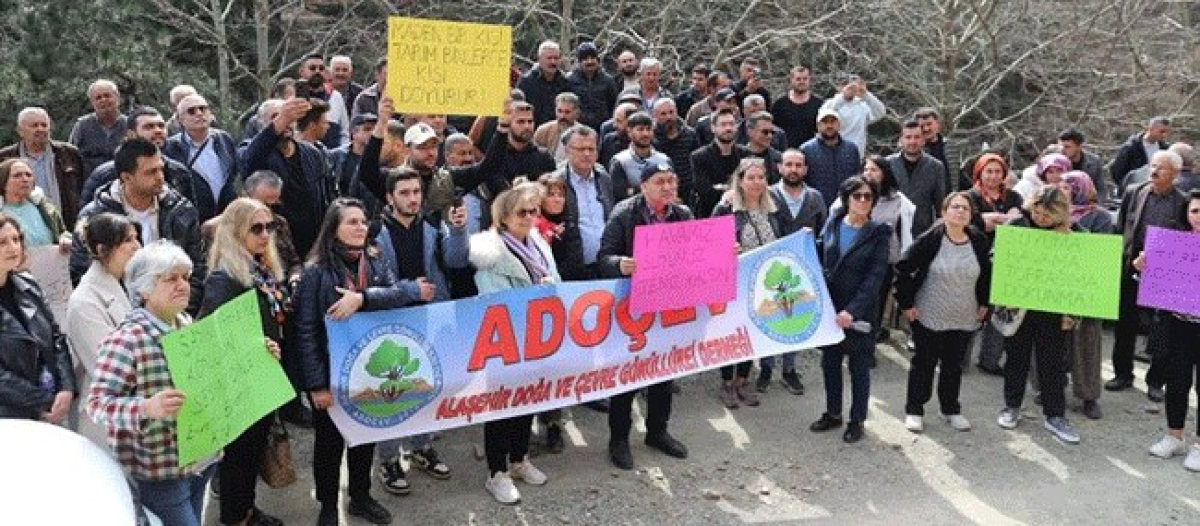 Duruşmanın ardından adliye önünde yapılan basın açıklamasını ADOÇEV Başkanı Alev Gümüşlü okudu. Gümüşlü, açılmak istenen madenin ilçenin içme suyu sahasında olduğunu belirterek, “Açılan maden sahasıyla hem köylerin gelirleri yok edilecek, hem Alaşehir halkının sağlıklı bir şekilde beslenmesi engellenecektir. Yapılacak çalışmalar sırasında hem patlatılacak dinamitler köy yerleşim yerinde hasarlara neden olacak, hem de derelere akıtılacak kimyasal maddeler ve atık madenler içme suyumuzu kirletecek” ifadelerini kullandı.