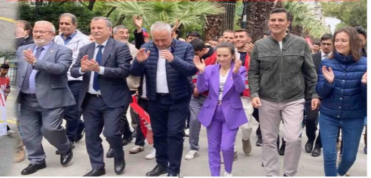 Manisa’da 1 Mayıs Emek ve Dayanışma Günü, bu yıl önceki yıllara kıyasla çok daha yoğun katılımla kutlandı. Sultan Camii önünden başlayan kortej yürüyüşü, coşkulu sloganlar eşliğinde Cumhuriyet Meydanı’nda son buldu.Kadın, erkek binlerce vatandaşın katıldığı yürüyüşte “Eşit işe eşit ücret”, “Yaşasın 1 Mayıs”, “İş, ekmek, özgürlük” gibi sloganlar atıldı. Katılımcılar ellerinde pankartlar, dövizler ve bayraklarla taleplerini dile getirdi.