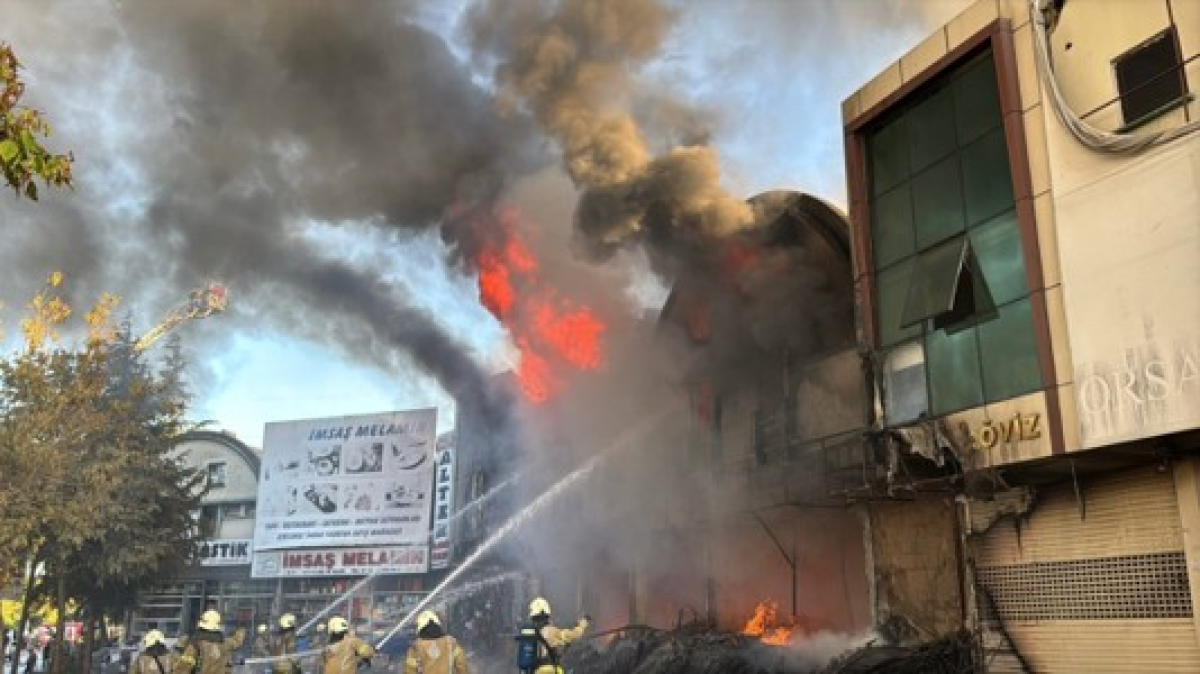 İSTOÇ'da yangın,ilk belirlemelere göre 17 işyeri hasar gördü
