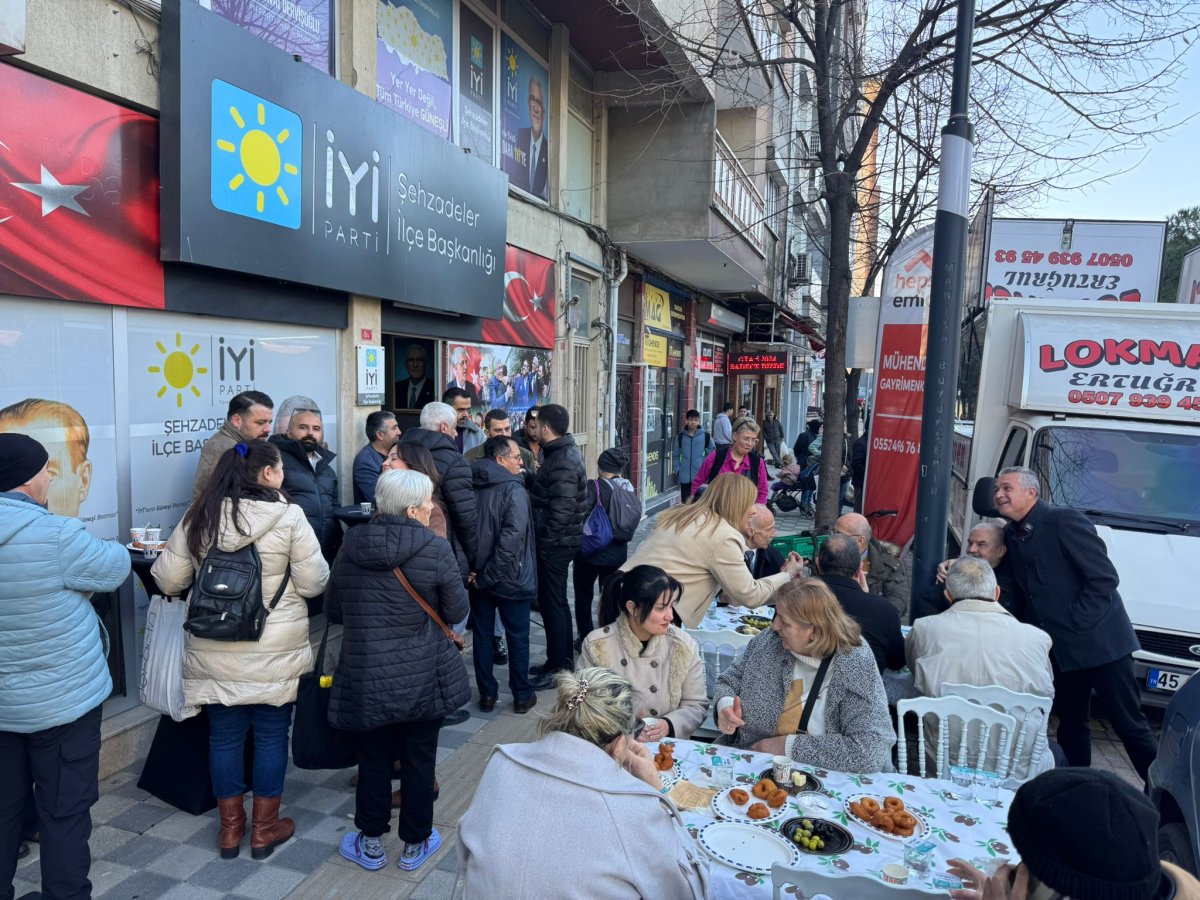 İYİ Parti Şehzadeler ilçe başkanlığı kandil için lokma hayrı düzenledi.İYİ Parti Şehzadeler İlçe Başkanlığı önünde düzenlenen lokma hayrına İYİ Parti Yunusemre İlçe Başkanı Banu Elbirler, geçmiş dönem İYİ Parti Şehzadeler Belediye Başkan Adayı Ahmet Karadağ, Şehzadeler Belediye meclis üyeleri, partililer ve çok sayıda vatandaş katıldı.