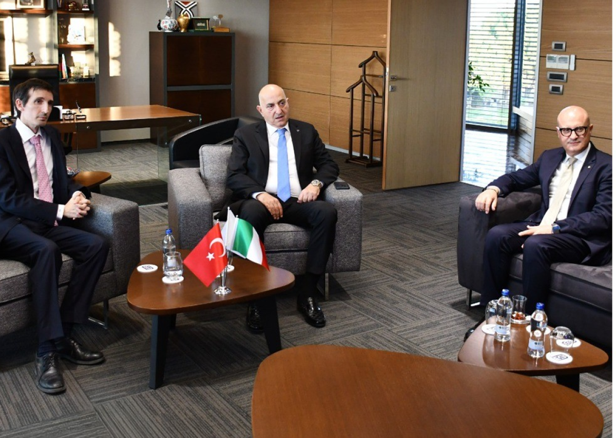 İzmir İtalya Konsolosu Daniele BIANCHI ve İzmir İtalyan Ticaret Odası Yönetim Kurulu Başkanı Sn. Pietro ALBA Bölgemizi ziyaret etti. “Ciao Türkiye, Merhaba Italia” sergimizin açılış töreni öncesinde, Yönetim Kurulu Başkanımız Sait TÜREK ile makamında görüştüler.